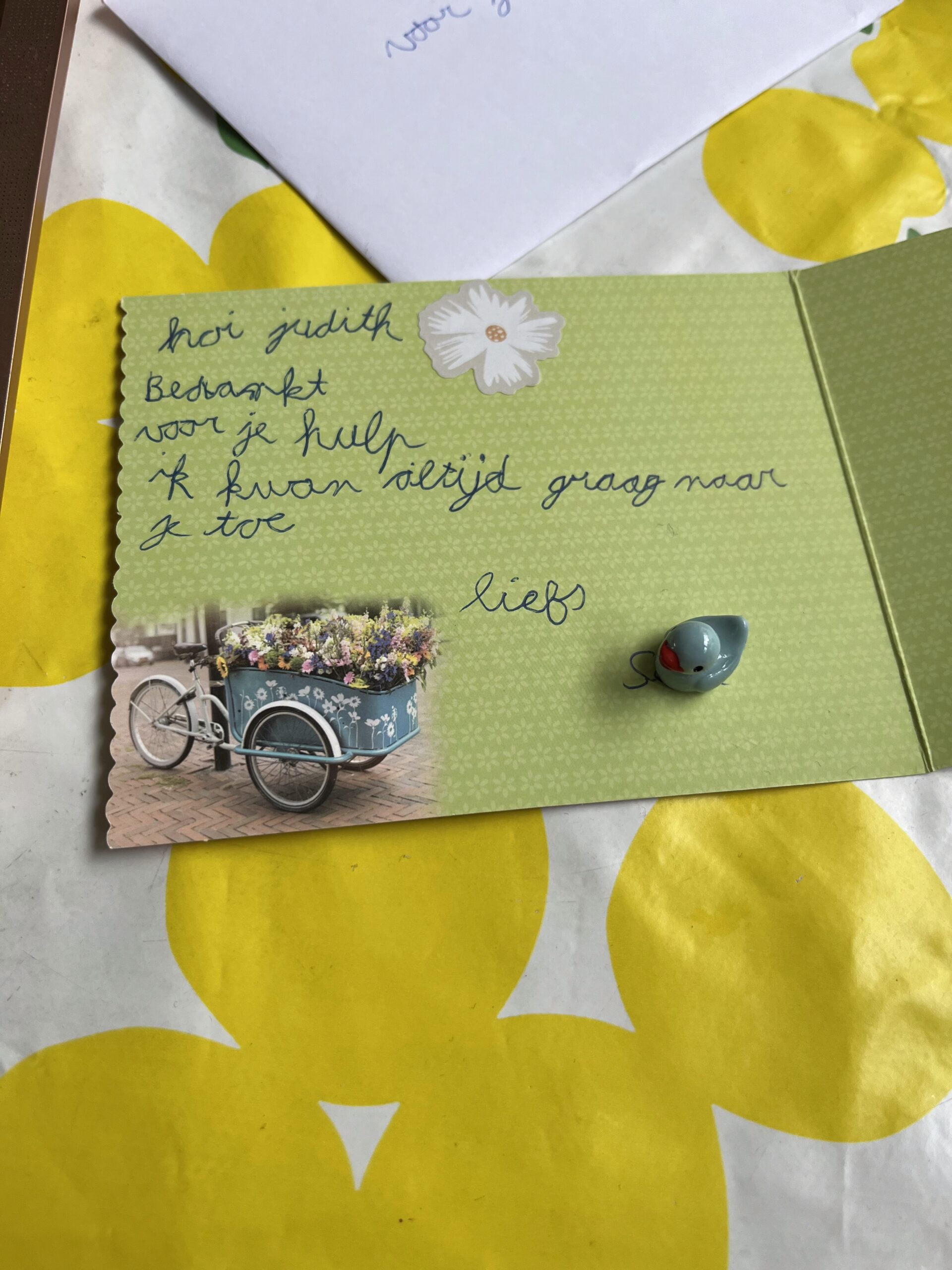 “Ahw wat ben je toch een topper Judith. Wat lief dat je aan ons denkt. Dikke knuffel van ons. đ”